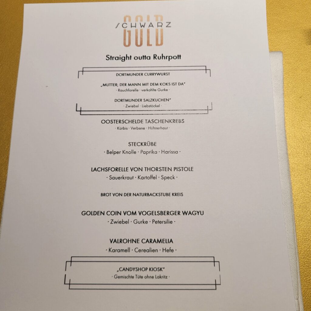 Gestern erste mal im „SchwarzGold“ gewesen, vielleicht bald ein neuer Stern für Dortmund, wer weiß. Federführend in der Küche ist hier Pierre Beckerling, welcher 2020 und 2021 im IUMA (mittlerweile geschlossen) schon mal einen Stern erkocht bzw. gehalten hat.
