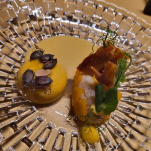 Dazu gab es noch die Möglichkeit, 2 Signature Dishes auszuwählen, wobei der Käse aus war. Beim lesen der ersten Option war für uns klar: nehmen wir!